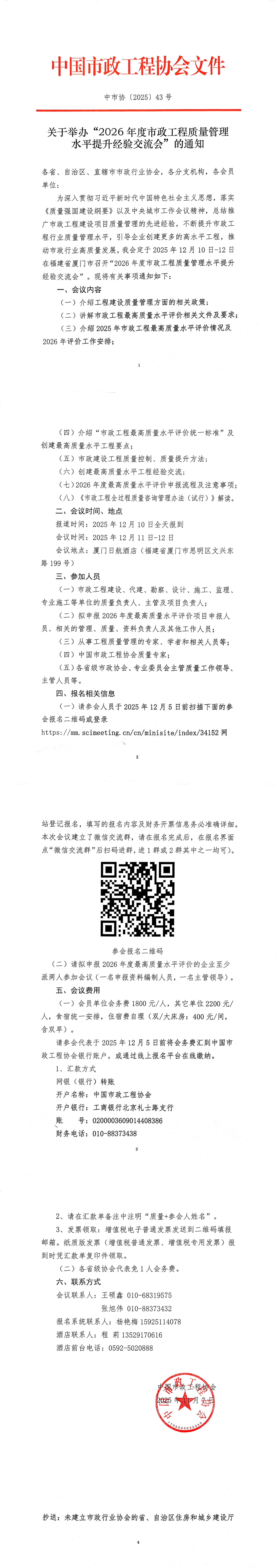 关于举办“2026年度市政工程质量管理水平提升经验交流会”的通知