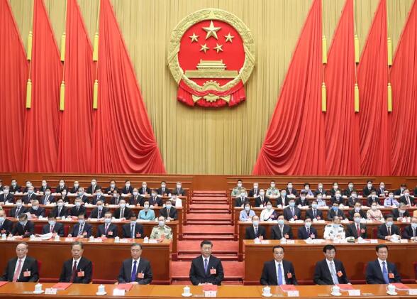 习近平、李克强、汪洋、王沪宁、赵乐际、韩正、王岐山和大会主席团成员在主席台就座。