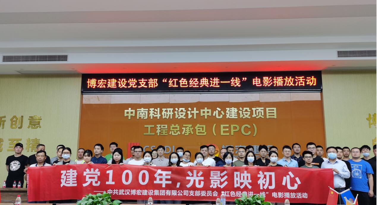 5月7日晚6点,汉阳市政博宏公司党支部开展“建党100年,光影映初心”电影播放活动,将红色电影带进公司中南科研设计中心项目部。50余位党员群众共同观看“建国三部曲”系列电影之《建军大业》,一起追忆红色故事。