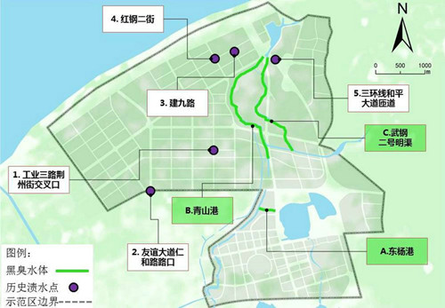 青山试点区域历史渍水点和黑臭水体分布公示图