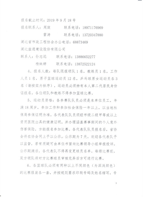 湖北省市政工程协会关于举办“湖北省市政行业职工第四届篮球及乒乓球友谊赛”的通知