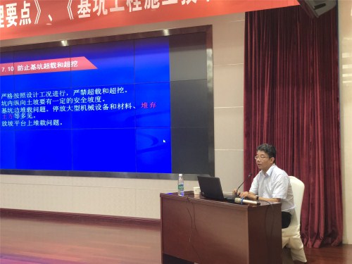下午的《基坑工程施工技术》由武汉市市政工程质量监督站正高职高级工程师唐传政授课,他分别从基坑工程概念、基坑工程支护结构分类、地下水控制以及基坑工程施工等方面做了详细的阐述及讲解,并对基坑施工做了如下总结:一、收集分析已有的施工经验,吸取一些成功的经验和失败的教训;二、分析场地工程地质和水文地质条件,了解基坑工程范围内及其影响范围内的土层分布,地下水情况以及不良地质现象;三、调查场地周边环境条件,尤其是周边建筑物结构、基础类型和埋深,地下管线的分布、埋深,道路及地下障碍的形状等;四、重视降水对周边环境的影响,采取有效的防范措施;五、认真编制基坑施工专项方案;六、严格专项方案内审程序和专家论证程序;七、合理组织基坑开挖施工顺序;八、严格支撑可靠性和有效性;九、完善基坑内外防排水系统;十、防止基坑超载和超挖;十一、重视基坑信息化施工;十二、制定详细应急预案。最后他指出,基坑工程是系统工程、风险工程,一定要严格勘察设计,精心组织、信息化施工,基坑施工的质量安全重于泰山。