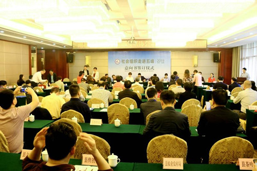 为贯彻习近平总书记关于扶贫工作中的重要指示精神,认真落实湖北省扶贫攻坚领导小组《关于印发广泛引导和动员社会组织参与脱贫攻坚的通知》精神,引导社会组织更好的开展精准帮扶工作。5月16日,由湖北省民政厅和五峰土家族自治县人民政府共同组织64家全省性及武汉市属社会组织和相关企业,走进深度贫困县——五峰土家族自治县,与该县有关部门和贫困村深入对接,结合各自专长和资源优势,提出帮扶五峰脱贫攻坚的具体举措,会场上共签订44份帮扶《意向书》。湖北省民政厅、宜昌市民政局、五峰县人民政府相关负责人参加签约仪式。