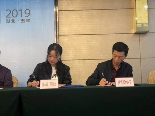根据省民政厅安排,在签约活动现场,湖北省市政工程协会代表办公室主任周旋与五峰土家族自治县实验小学向秋华校长签订了捐赠意向书,捐款两万元用于资助当地小学贫困学生。