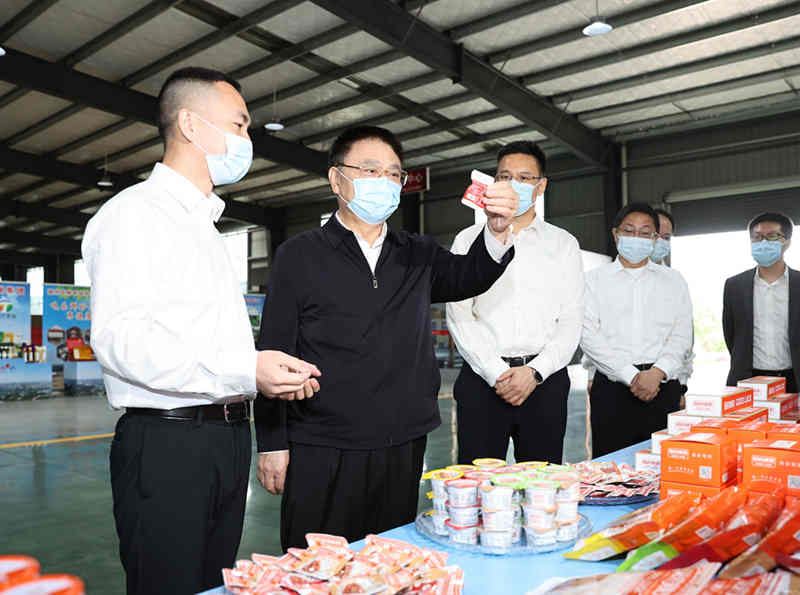 品源(随州)现代农业发展有限公司是一家集食用菌种植、农产品精深加工及出口贸易于一体的农业产业化国家重点龙头企业。王蒙徽来到品源公司,察看生产线和农特产品展示。“企业如何带动农户?”“农户从中能增加多少收入?”王蒙徽鼓励企业加大市场开拓力度,提高产品知名度。他强调,湖北农业资源丰富,许多农产品质量都很好,要加强宣传推广,做足做好特色发展的文章,进一步把品种做优、品质做高、品牌做强,带动农业产业化、现代化,促进农民增收致富,努力缩小城乡差距。