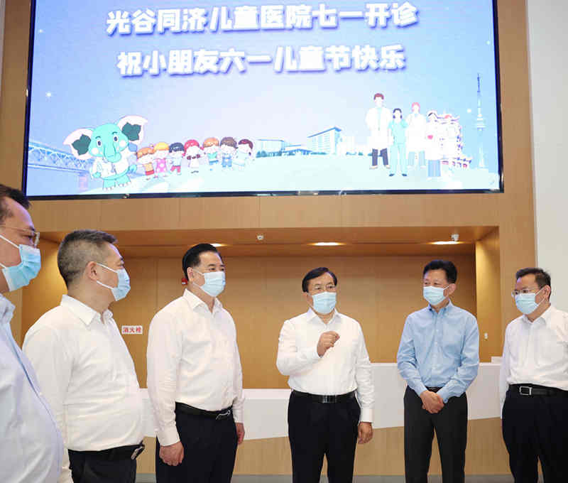 光谷同济儿童医院属于同济医院光谷院区二期工程,是国家重大公共卫生事件医学中心的重要组成部分,2020年7月22日开工建设,将于今年7月1日正式投入运营。王忠林认真听取医院建设情况介绍,察看药品自动化运输系统、儿童病房和急诊输液室,对参建各方克服困难,用不到两年时间高质量高标准完成建设任务给予充分肯定。