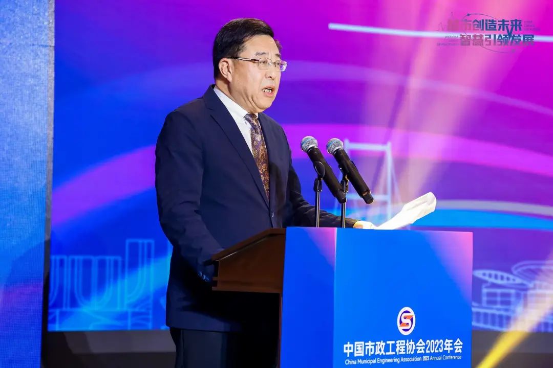 中国市政工程协会会长卢英方发表致辞。他代表中国市政工程协会向应邀出席2023年会的各位代表、各位来宾、朋友们表示衷心感谢和热烈欢迎。