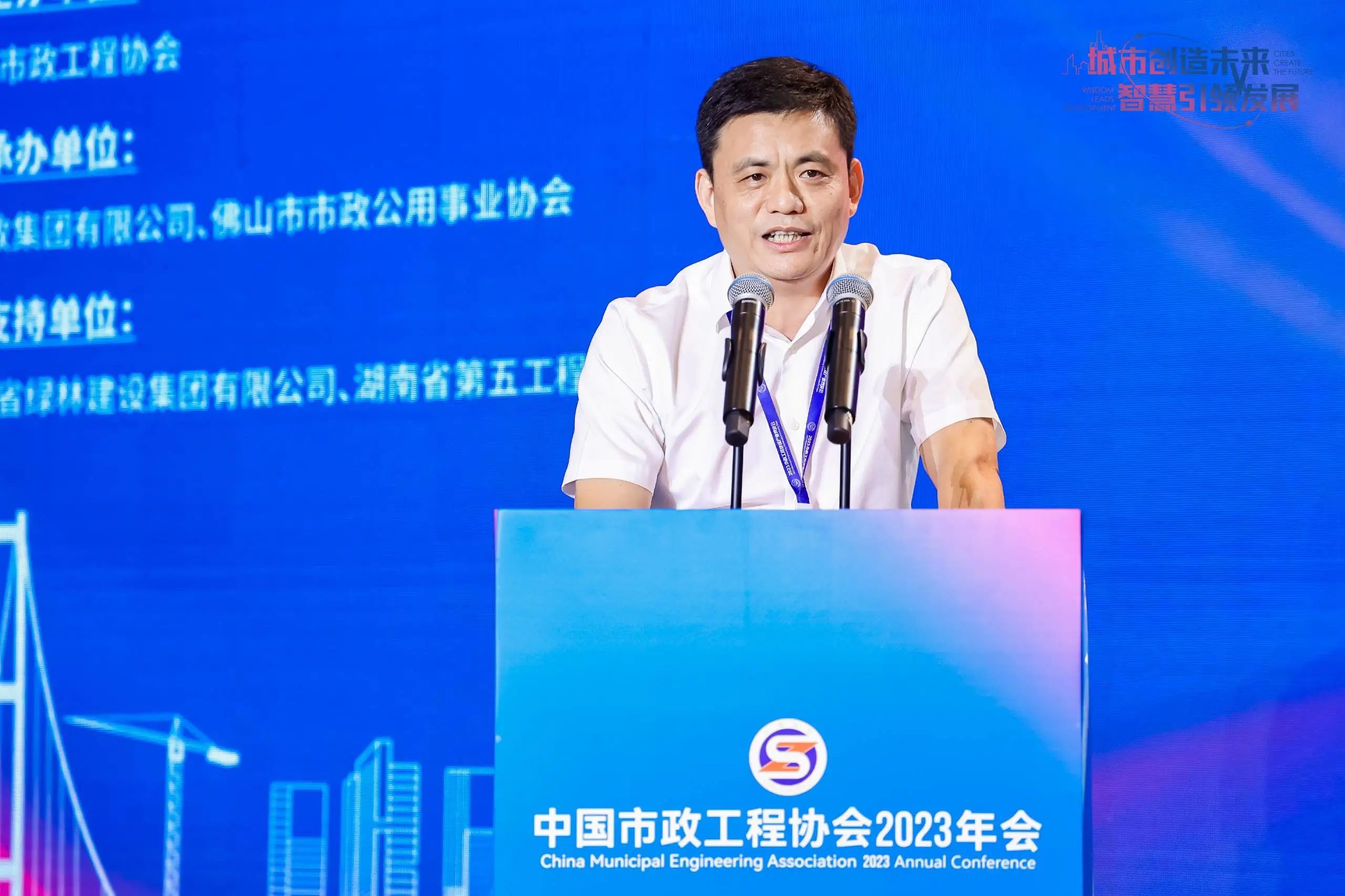 会议东道主中国市政工程协会副会长、广州市市政集团有限公司董事长郭云飞致欢迎词,他表示中国市政工程协会是全国市政行业的火车头和领头人,通过组织一系列高峰论坛、产业博览会、技术培训等,引导市政行业工业化、数字化、绿色化转型升级,不断实现市政行业高质量发展。