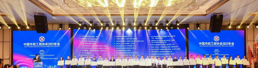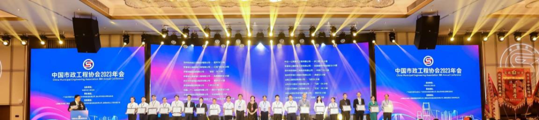 中国市政工程协会会长卢英方,副会长陈锦耀、郑旭晨、胡承启、盛伯荣、闫建平、张恒利、唐建新、郭云飞为通过2023年市政工程最高质量水平评价的企业代表颁发证书。